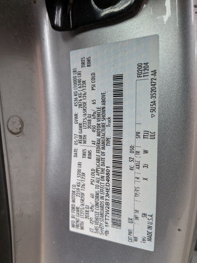 - VIN : 1FT7W2BT3HED49801