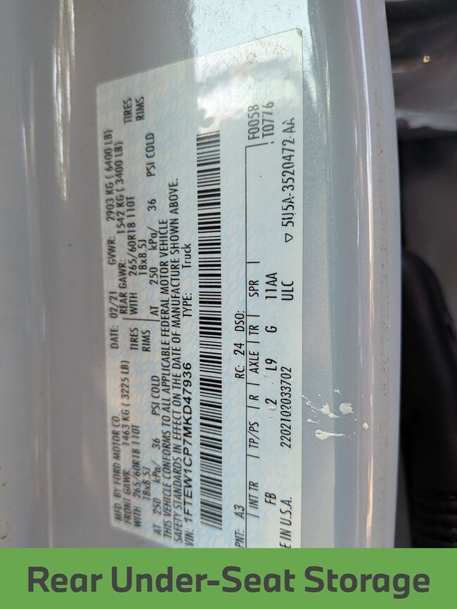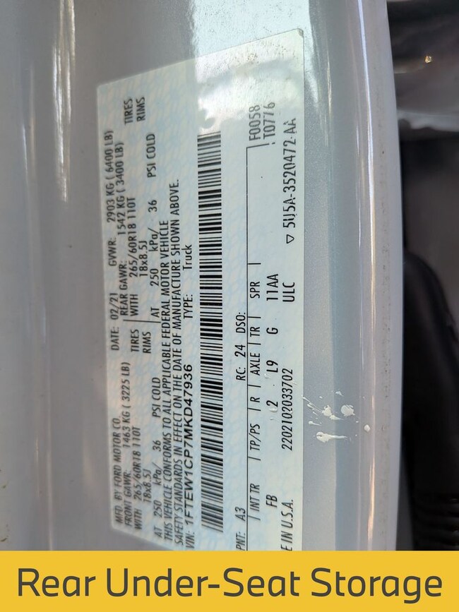 - VIN : 1FTEW1CP7MKD47936