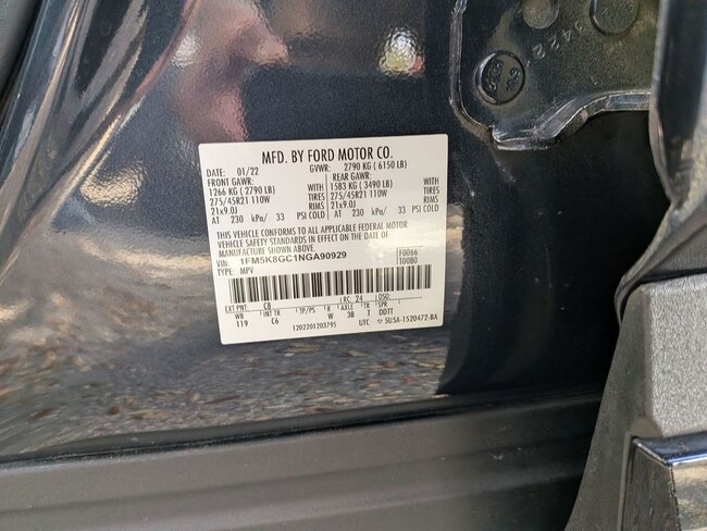 - VIN : 1FM5K8GC1NGA90929