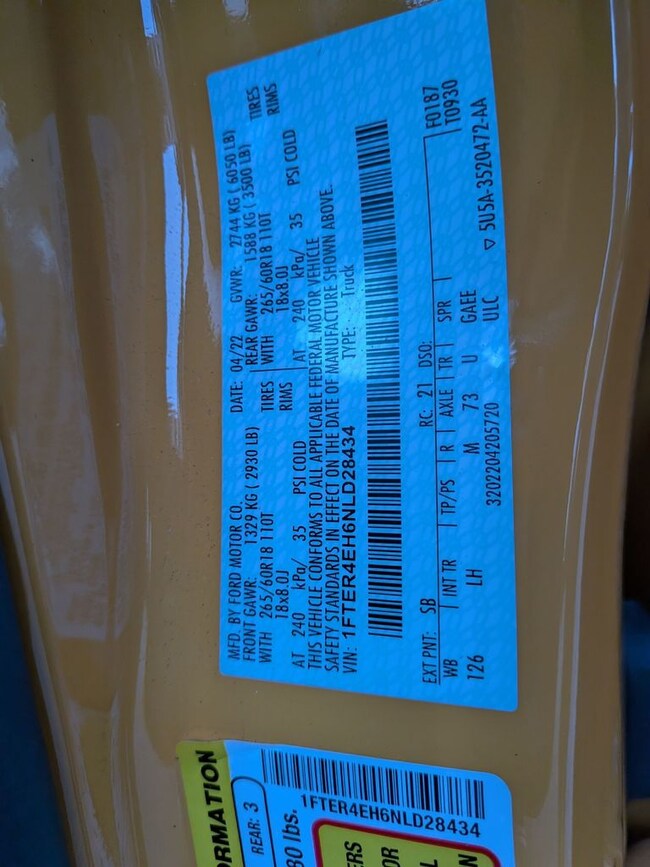 - VIN : 1FTER4EH6NLD28434