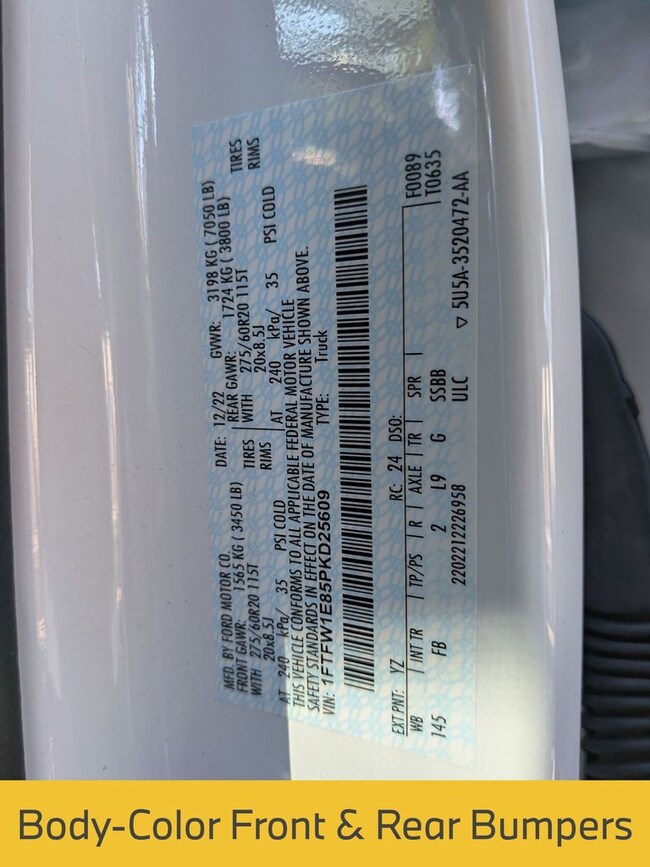 - VIN : 1FTFW1E85PKD25609