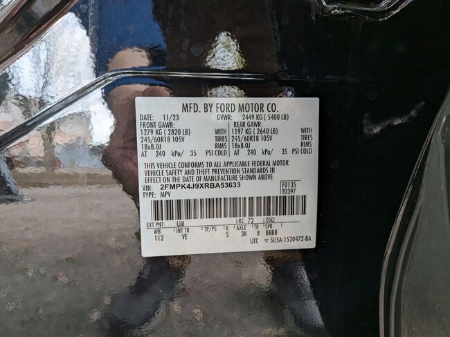- VIN : 2FMPK4J9XRBA53633