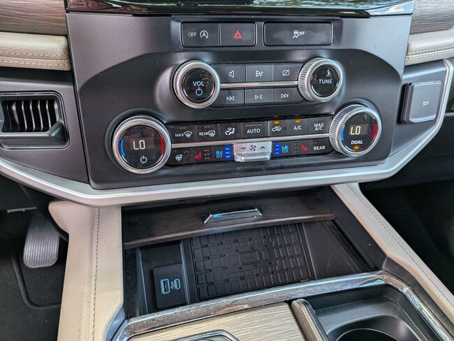 - Simulated wood/metal-look center console trim