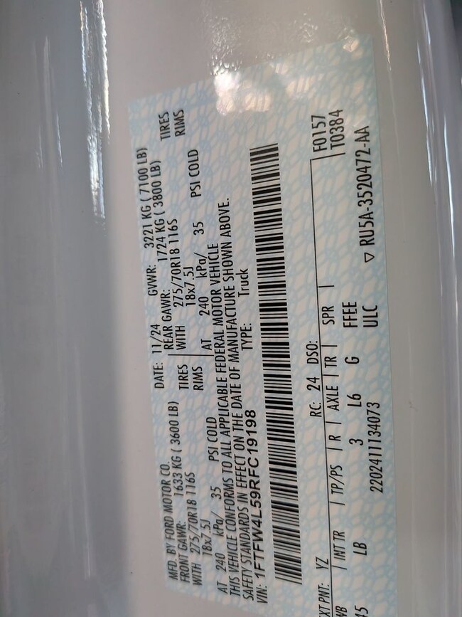 - VIN : 1FTFW4L59RFC19198