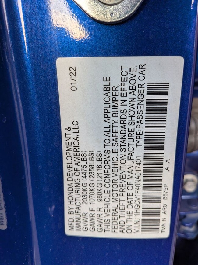 - VIN : 1HGCV1F40NA017401