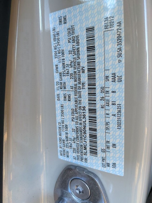 - VIN : 5LMCJ1C90NUL36136