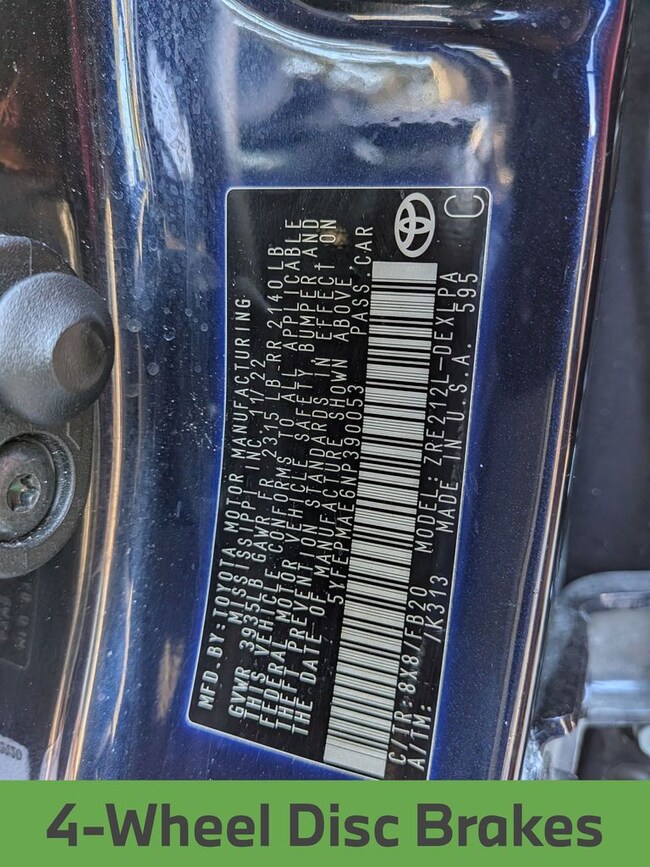 - VIN : 5YFEPMAE6NP390053